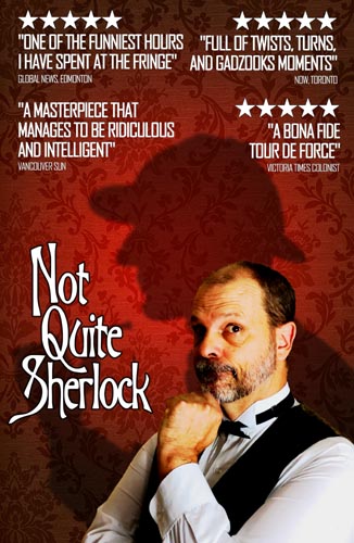 Not Quite Sherlock (under its original title, ‘Antoine Feval’) was first performed in 2005 at the Winnipeg Fringe Festival, where it won Best of Fest. Since then the show has been performed all over Canada (and a little bit beyond). It sold out its entire Toronto Fringe run in 2006, won the Just For Laughs Best Comedy Award in the 2009 Montreal Fringe, and then played at Just For Laughs that year. Other highlights include the Revolutions Festival in Albuquerque, NM, the High Performance Rodeo in Calgary, The World Buskers Festival in New Zealand, and the Victoria Playhouse, Victoria by the Sea, PEI.